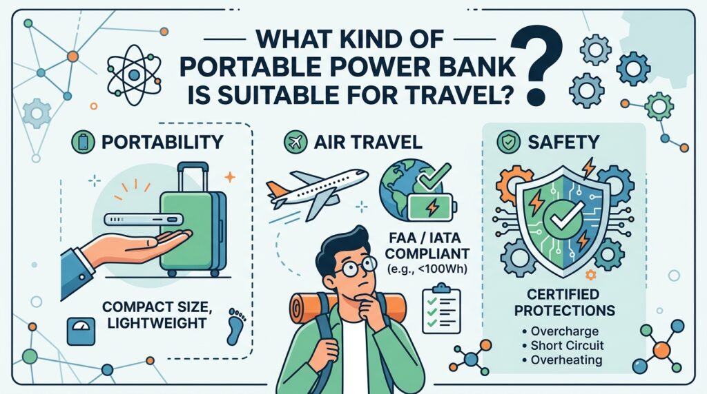 For travel, a 10,000mAh power bank is often best. It gives you 1–2 full phone charges. It is compact, lightweight, and always well under the 100Wh airline limit. This size offers the right mix of power and convenience for most journeys.